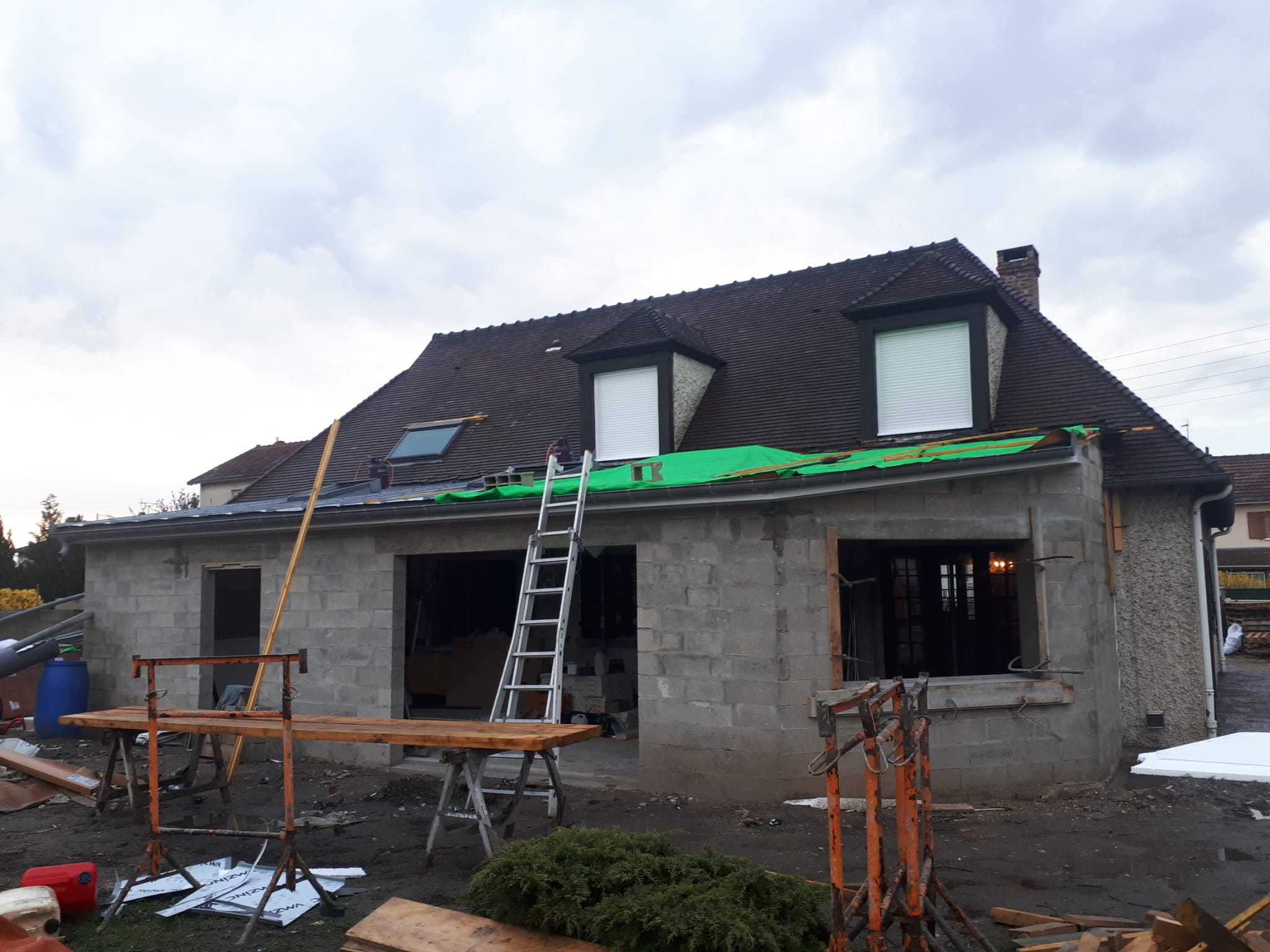 - Extension, surélévation, terrasse béton, reprises de raccordements.
